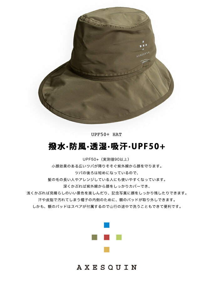【AXESQUIN アクシーズクイン】UPF50+ ハット AX1047 撥水・防風・透湿・吸汗・UPF50+のハイスペック。