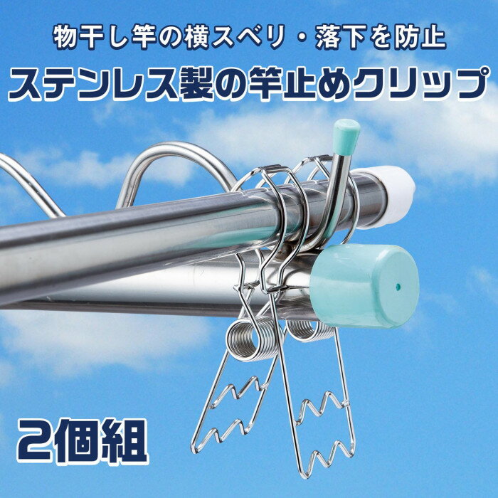 【全品25円offクーポン対象】ステンレス 竿止めクリップ 2個組 物干し竿 固定 竿ピンチ ストッパー 落下防止 洗濯ばさみ おしゃれ【ポイント消化】