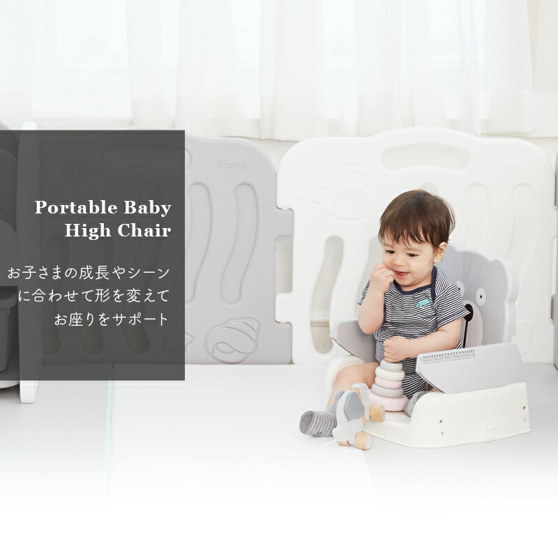 ポータブルベビーチェアは、離乳食椅子からガードの役割をする座椅子に変身! お子さまの成長に合わせて、正しい座り姿勢を形成します。